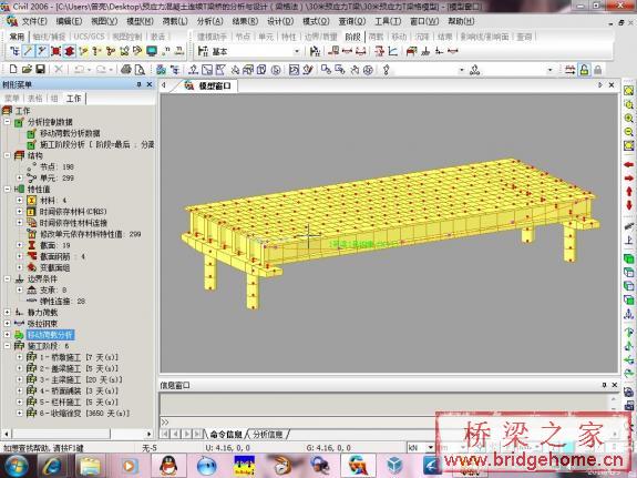 发个预应力T梁模型,因为我找这个做的很全面的模型找了好久(上下部齐全,变截面,预应力,横隔梁都有,不是一个简单的演示例子),终于找到了传上来分享一下,是个非常好的参考模型。